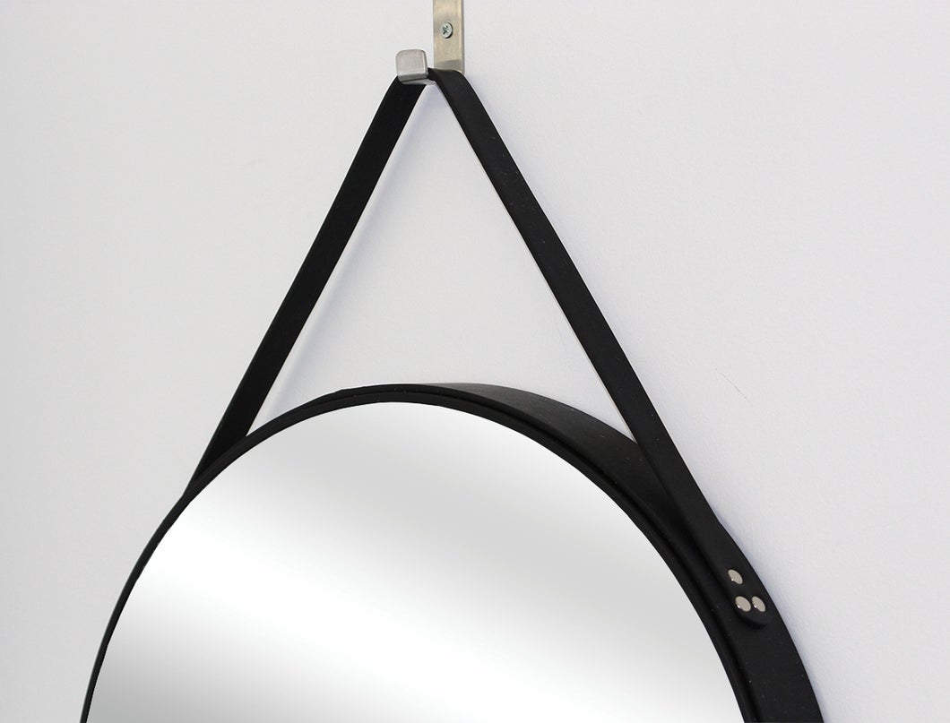 The Piers mirror is a minimalist piece with a twist, designed to make a strong visual statement in any living space. The on-trend hanging mirror offers a lustrous take on vintage décor in modern interior. The piers features a round metal frame, suspended by a leather strap, designed to add just the right amount of visual appeal to any room. The mirror is available in black and brown leather.